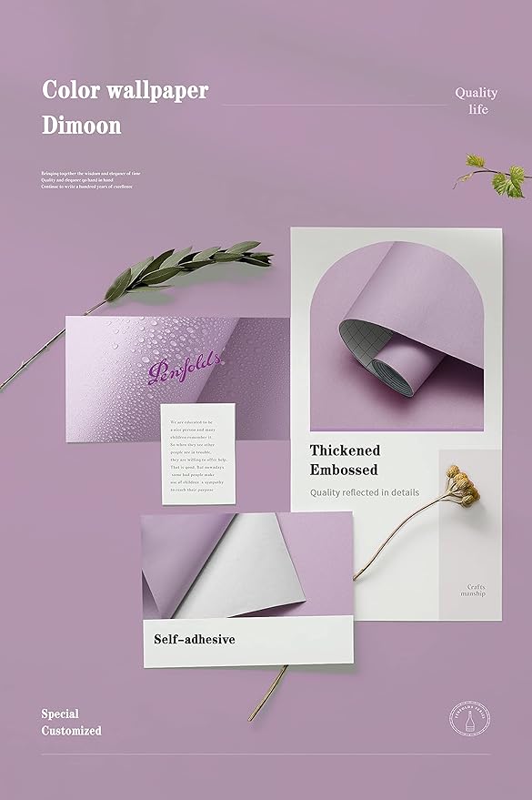 Dimoon 118''x17.7'' Purple Peel and Stick Wallpaper Contact Paper Modern Self Adhesive Wall Paper Removable Renter Friendly Textured Solid Color Shelf Cabinet Vinyl Roll (118''x17.7'',Purple)