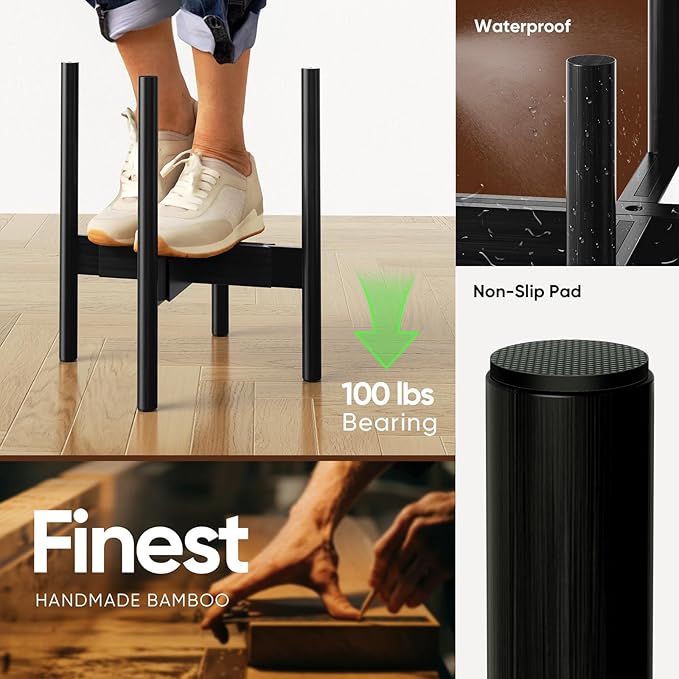 MUDEELA Adjustable Plant Stand Indoor, Bamboo Plant Stand 8 to 12 Inches, Single Floor Plant Stand for Indoor Plants, Bamboo Black Planter Stand for Indoor Plants, Pot Plant Not Included