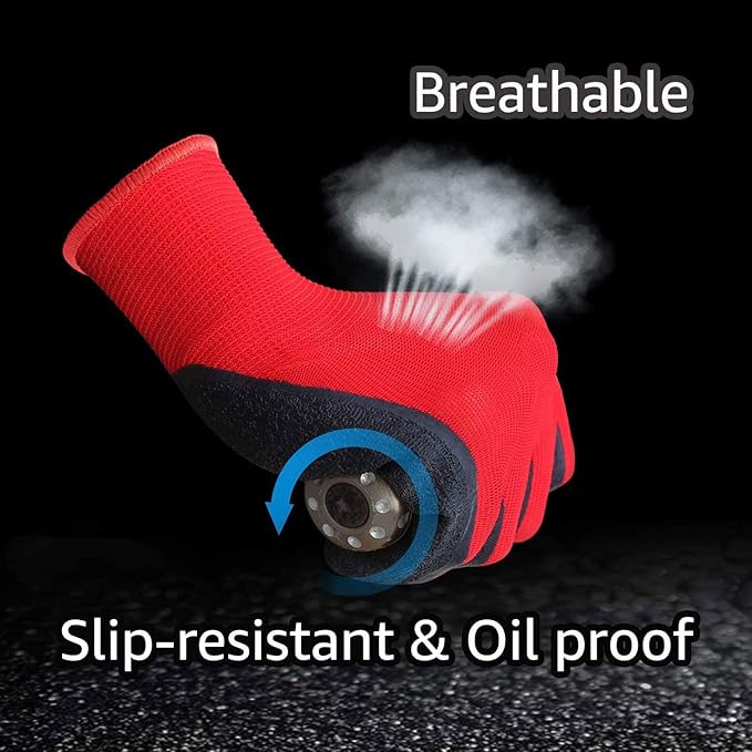 • TEXTURED COATING: Latex/rubber palm and finger crinkle coating, provides Anti-slip, Cut and Puncture resistant and repels light liquids.