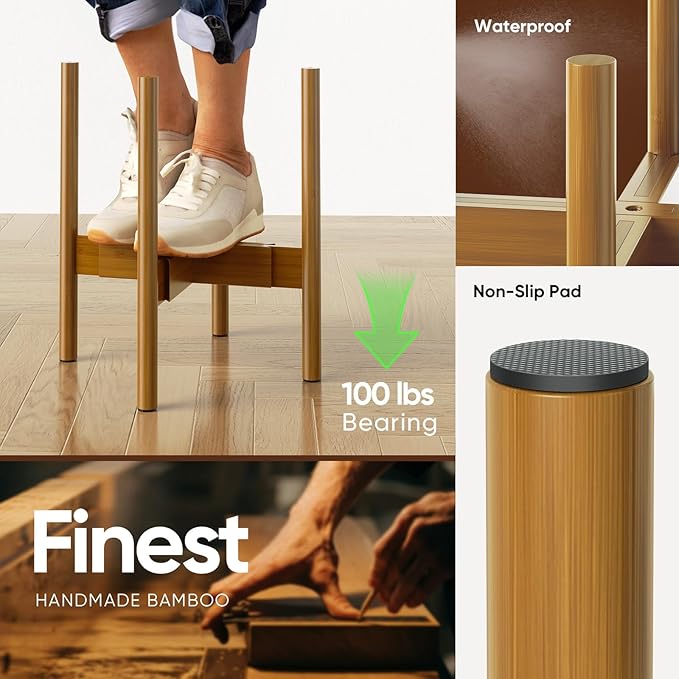 • 【Awesome Addition to Room Decor】The bamboo and wood with simple texture and beautiful color could blend well with your furniture style; Our mid century modern plant stand will improve the decor of your living room dining room bedroom office balcony and more