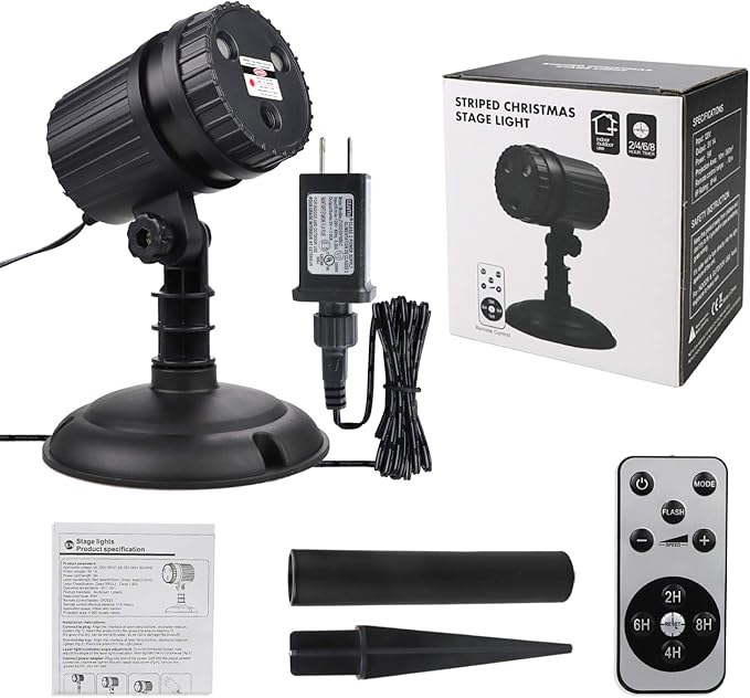 - RF Remote Control and Timer--- Our outdoor laser lights come with RF remote control, allows you from anywhere in or around the house to turn on/off, control the pattern moving speed, flash mode or set the timer. 4 preset timing, 2H, 4H, 6H, 8H lights on, 22H, 20H, 18H 16H lights off