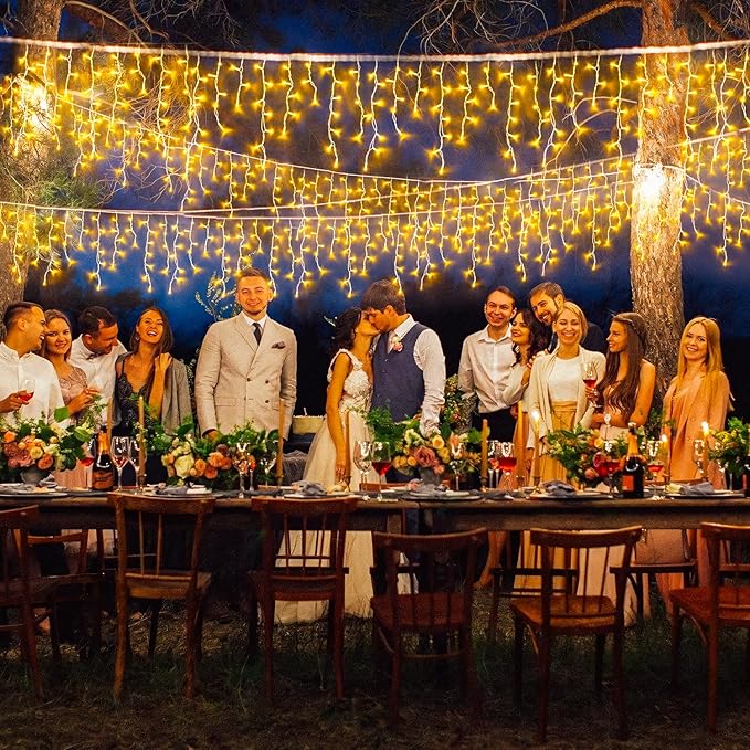 - Perfect Wedding Decorations: Give your wedding celebrations into a magical with our curtain lights. Perfect for creating a romantic ambiance, icicle curtain lights drape elegantly before the backdrop or the tents, casting a nice glow. Whether it's a cozy dinner for two under the stars or a grand wedding reception, our wedding lights add a touch of enchantment, making every moment unforgettable. Light up your special day with the perfect blend of elegance and warmth.
