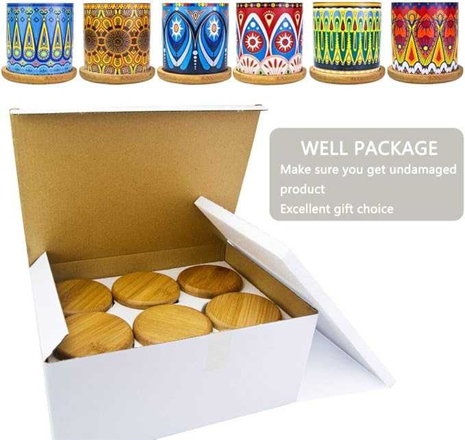 - 【Mandala Succulent Pots】- You will get 6 pack plant pots with bamboo coaster. Planter inside diameter 2.5inch (outside diameter 3inch), bamboo coaster diameter 3.6", thickness 0.4". Notice: Plant is not included.