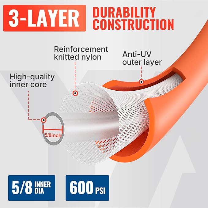 - Sturdy and Durable - Integrated with industry engineering, stand up to Burst 600 PSI / Work 200 PSI, top-level strengthen hose than similar. Come with heavy-duty solid brass 3/4" GHT one female end and one male end, support you widely work from home garden to commercial work for long years.