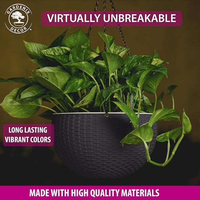 - While other plastic hanging baskets for plants look cheap and low-quality – a serious downgrade for your plant decor – our hanging plant pots are made of durable, top-quality polypropylene in fresh, clean white. Virtually unbreakable, our white planter hanging pot color is injected directly into the material, so it stays vibrant and true longer and won´t fade in direct sunlight. These durable white pot planter pots with drainage are great to use both indoors and outdoors!