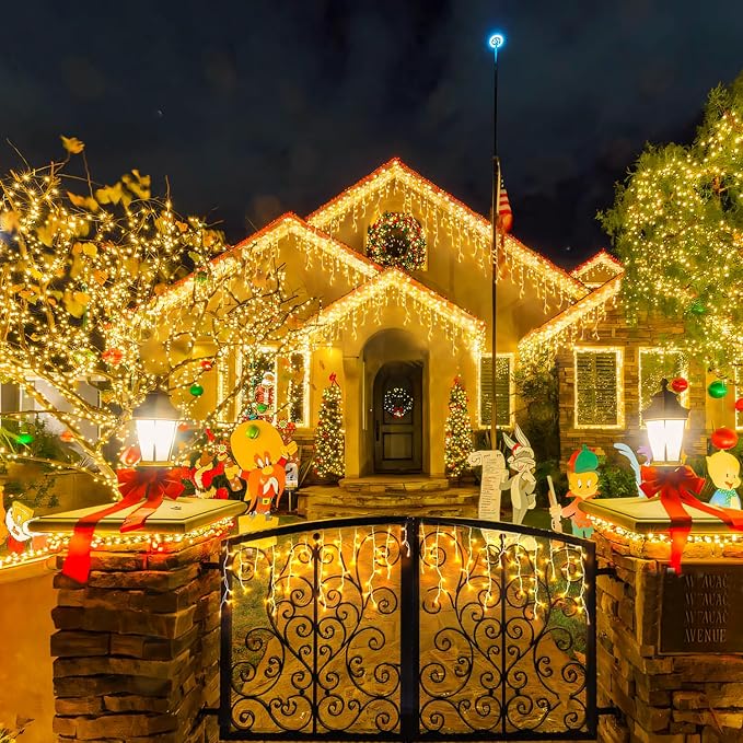 JMEXSUSS 800 LED Icicle Lights for Outside, Icicle Christmas Lights Outdoor, Warm White Christmas Lights for House Holiday Party Wedding Christmas Decorations