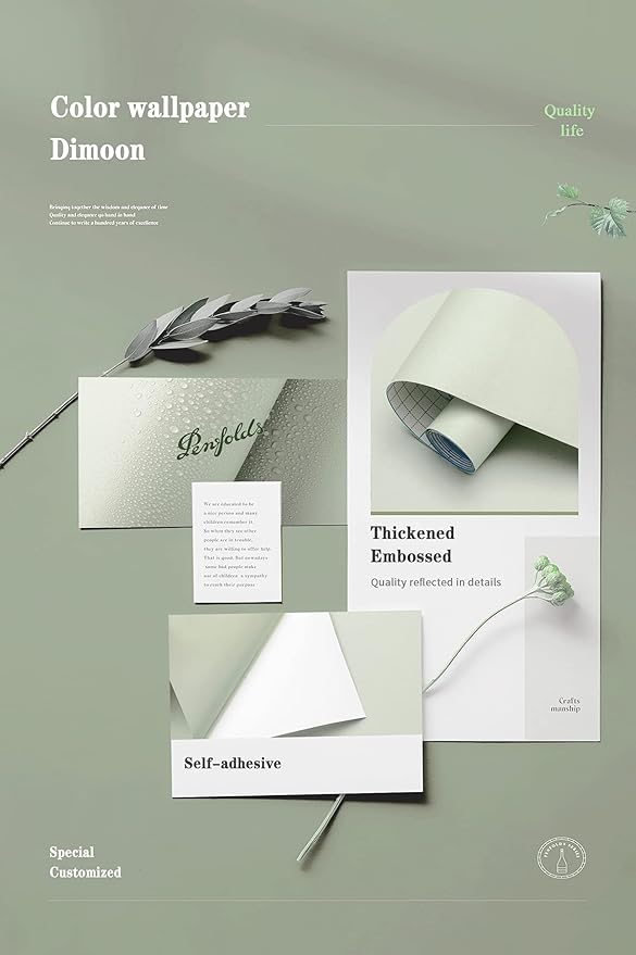 Dimoon 118''x17.7'' Green Peel and Stick Wallpaper Contact Paper Modern Self Adhesive Wall Paper Removable Renter Friendly Textured Solid Color Shelf Cabinet Vinyl Roll (118''x17.7'',Palegreen)