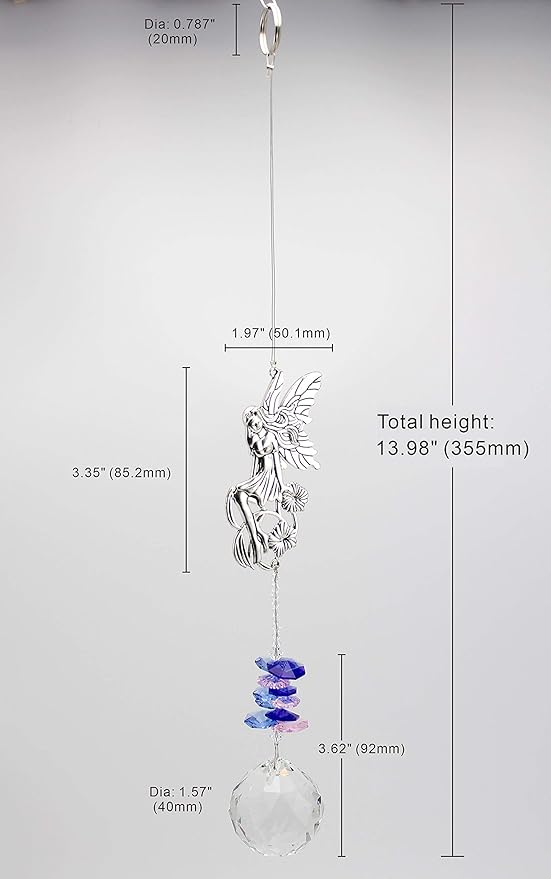 - Prisms: 40mm clear faceted crystal ball & themed multi color super thin edge crystal prisms cascade echoing the higher above metal motif charm, ended with a diameter 2cm stainless key ring at the top for easier hanging