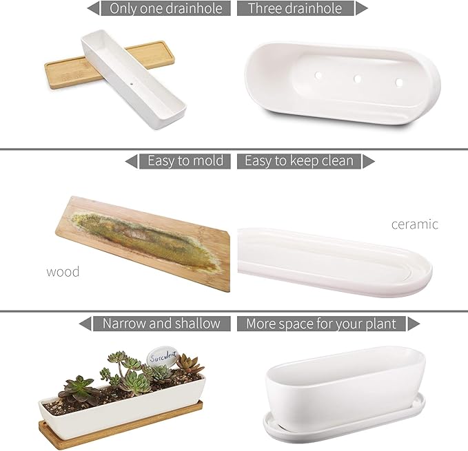 - Drainage Holes, Ceramic Tray: This succulent pot features 3 drainage holes at the bottom and includes a separate ceramic tray to prevent overwatering. Suitable for indoor or outdoor use, it's perfect for planting herbs, succulents, and cacti