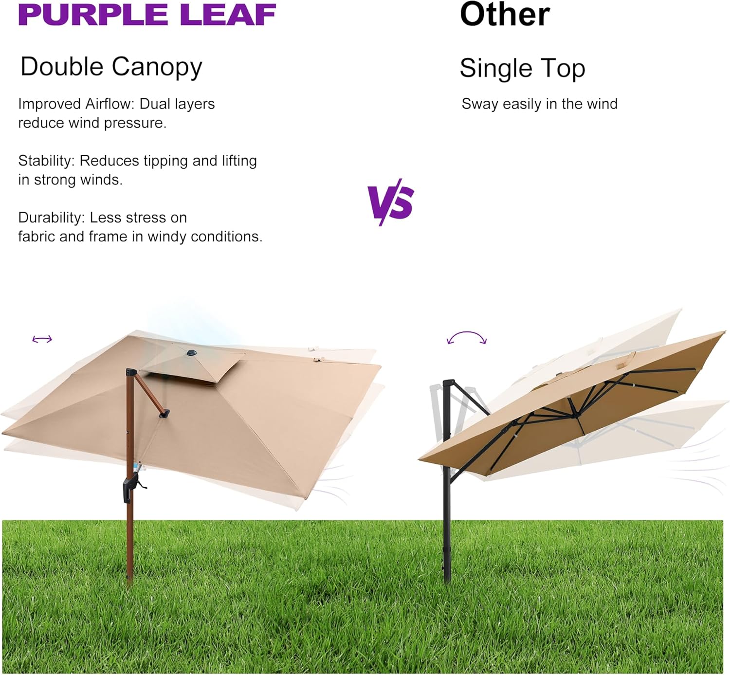 PURPLE LEAF 12ft Patio Umbrella Outdoor Square Umbrellas Large Cantilever Umbrella Windproof Offset Umbrellas Heavy Duty Sun Umbrella for Garden Deck Pool Patio, Beige