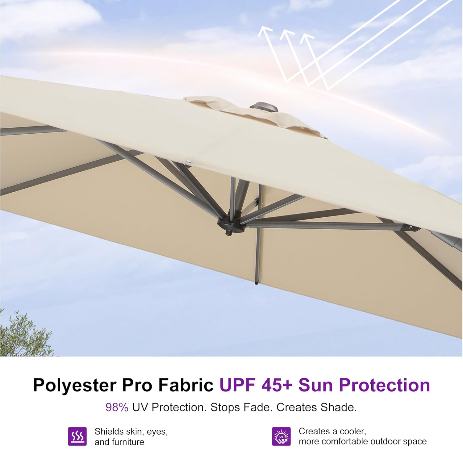 PURPLE LEAF 10 Feet Patio Umbrella Outdoor Cantilever Square Umbrella Aluminum Offset Umbrella with 360-degree Rotation for Garden Deck Pool Patio, Beige