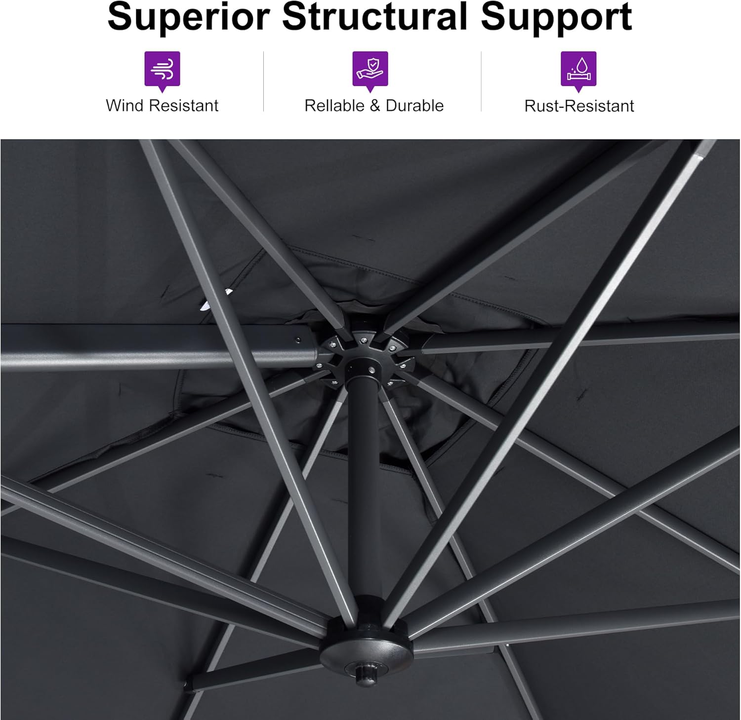 PURPLE LEAF 10 Feet Patio Umbrella Outdoor Cantilever Square Umbrella Aluminum Offset Umbrella with 360-degree Rotation for Garden Deck Pool Patio, Grey