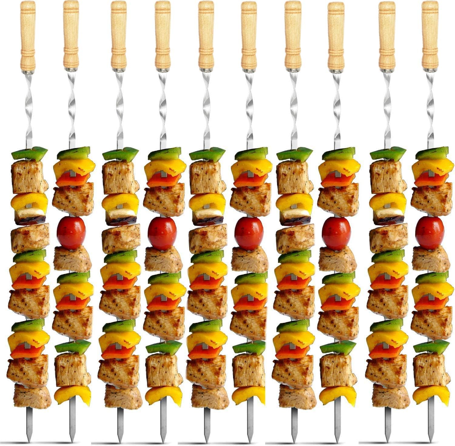 • Nonslip Wooden handle-the end of each barbecue skewers have a nonslip wood handle that helps you better hold, turn and control each bbq stick with your fingers. Ideal for smores on the campfire