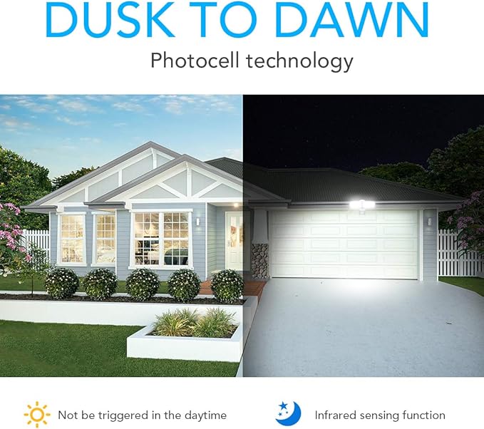- 【EASY INSTALLATION & EXCELLENCE CUSTOMER SERVICE 】This outdoor motion security light can be easily installed for wall mounting and eave mounting by following a few simple wiring steps. We provide 24/7 after-sales service and stress-free 2-year warranty. Your satisfaction is our first priority -the fast and easy replacement and refund for any quality problems are guaranteed.