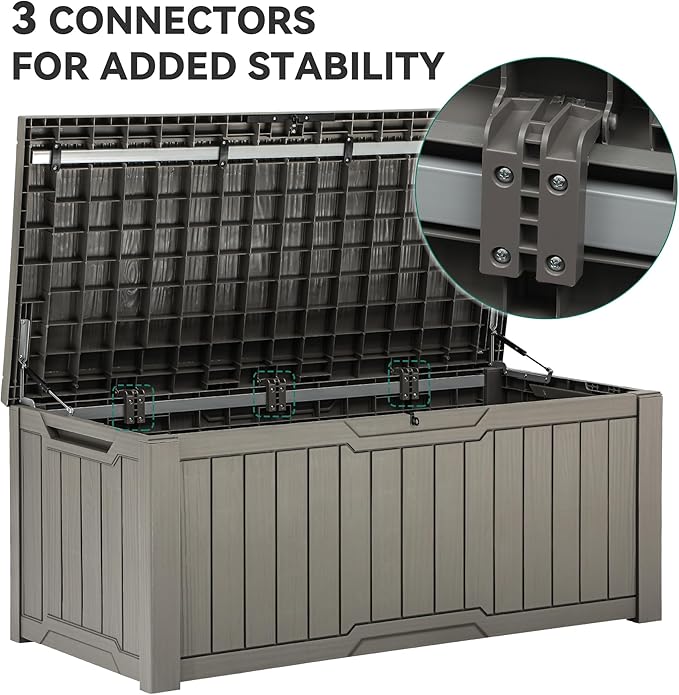 • HIGHLY DURABLE: Structured with all weather-resistant resin that prevents fading and rusting;Added Iron rods for deck box's extra support and strength.