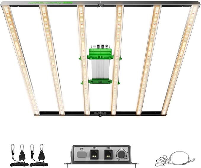 - INNOVATIVE PRECISE UNIFORM LIGHTING: New Version FC-E6500,The deep grey design exudes sophistication and a modern aesthetic.Without installation demand & dimmability enable the exact dynamic PPFD control over each of plant growing stages, FC-E6500 easy-to-install uniform adjustable PPFD levels throughout plant canopy, best for more uniform Density Buds. The bar-style design results in even light distribution that promotes uniform plant growth while avoiding hotspots in the center.