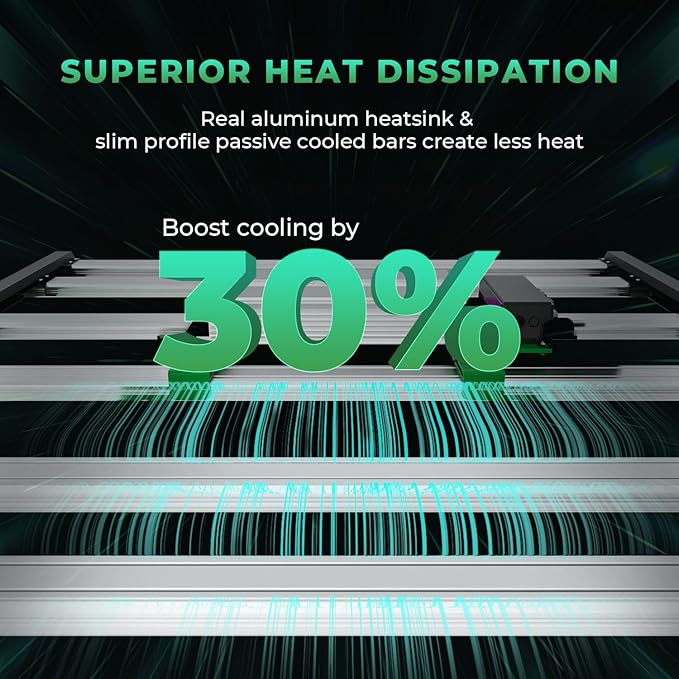 - SUPERIOR HEAT DISSIPATION: The commercial LED grow lights FC-E6500's slim profile aluminum heatsink and detachable power supply ensure efficient heat dissipation, maintaining optimal growing temperatures while reducing electricity costs by up to 50% compared to HID lights.