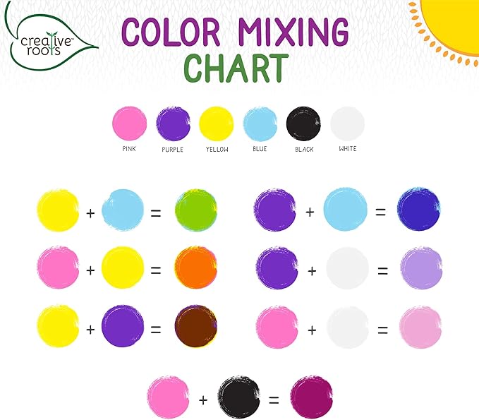 • Includes 6 vibrant acrylic paint colors and paintbrush to create color patterns and designs
