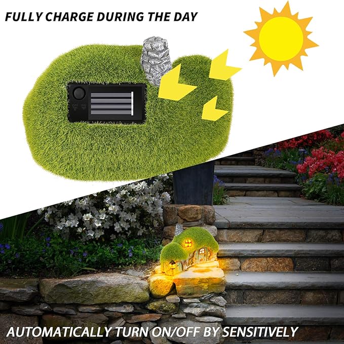 - Solar Powered: Powered by a solar panel, charging in daytime and automatically lights up at night. The house interior and wall light will be on at the same time
