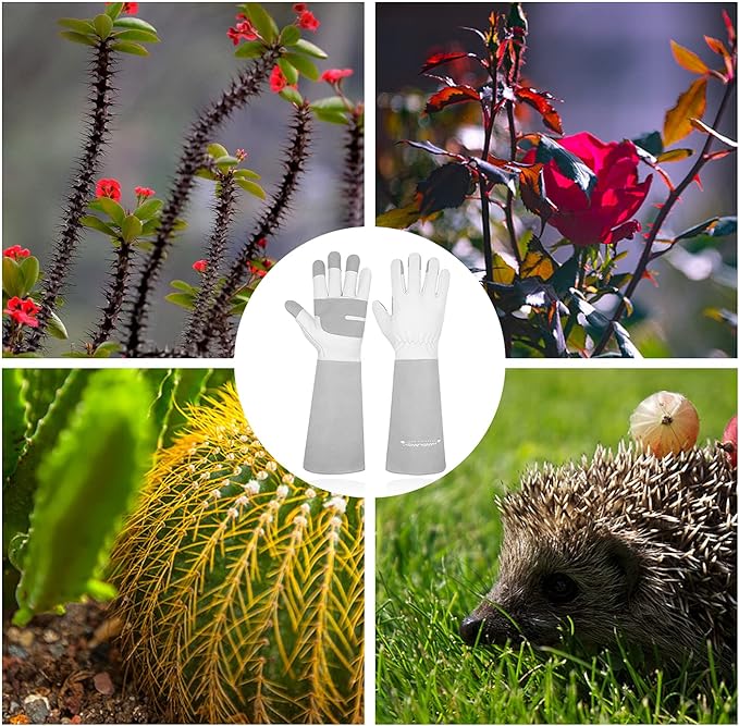 - What Every Gardener Needs! --- Thorn proof long garden gloves do a great job protecting your hands and arms from rose thorns, brambles, perfect for prune thorny bush, weeding and trimming trees.