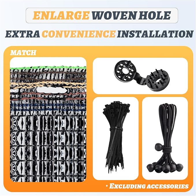 • 【Special Woven Hole Design】Made with new high density polyethylene (HDPE) material which Provides extra convenience for installation, garden shade cloth can block 55% of the sun and provide UV protection.