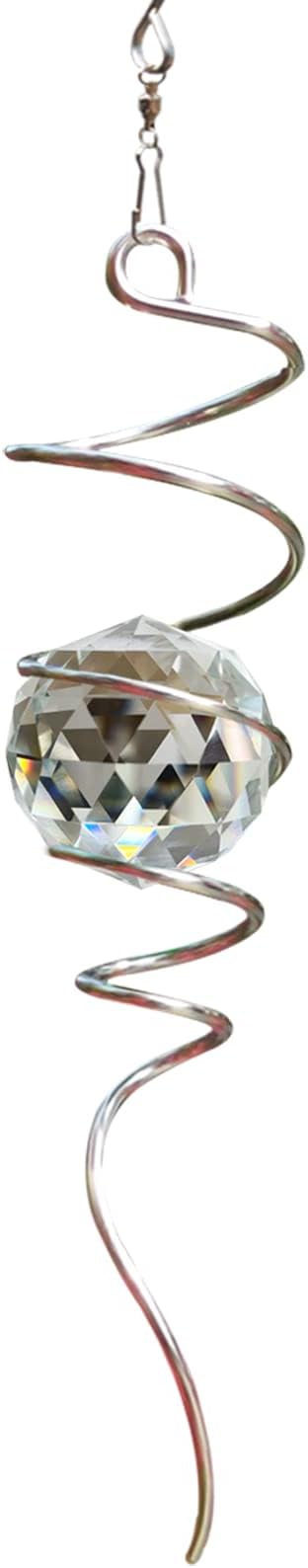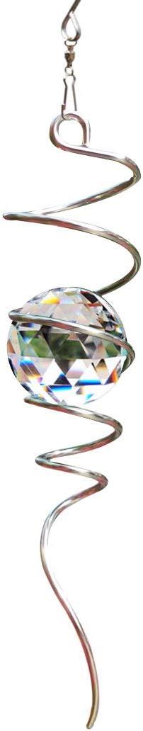 FONMY Gazing Ball Spiral Tail -Decorative Wind Spinner Sun Catcher 11 inch Tail and 2 inch Clear Crystal Orb. Indoor Outdoor Garden Decoration -13 inch Height