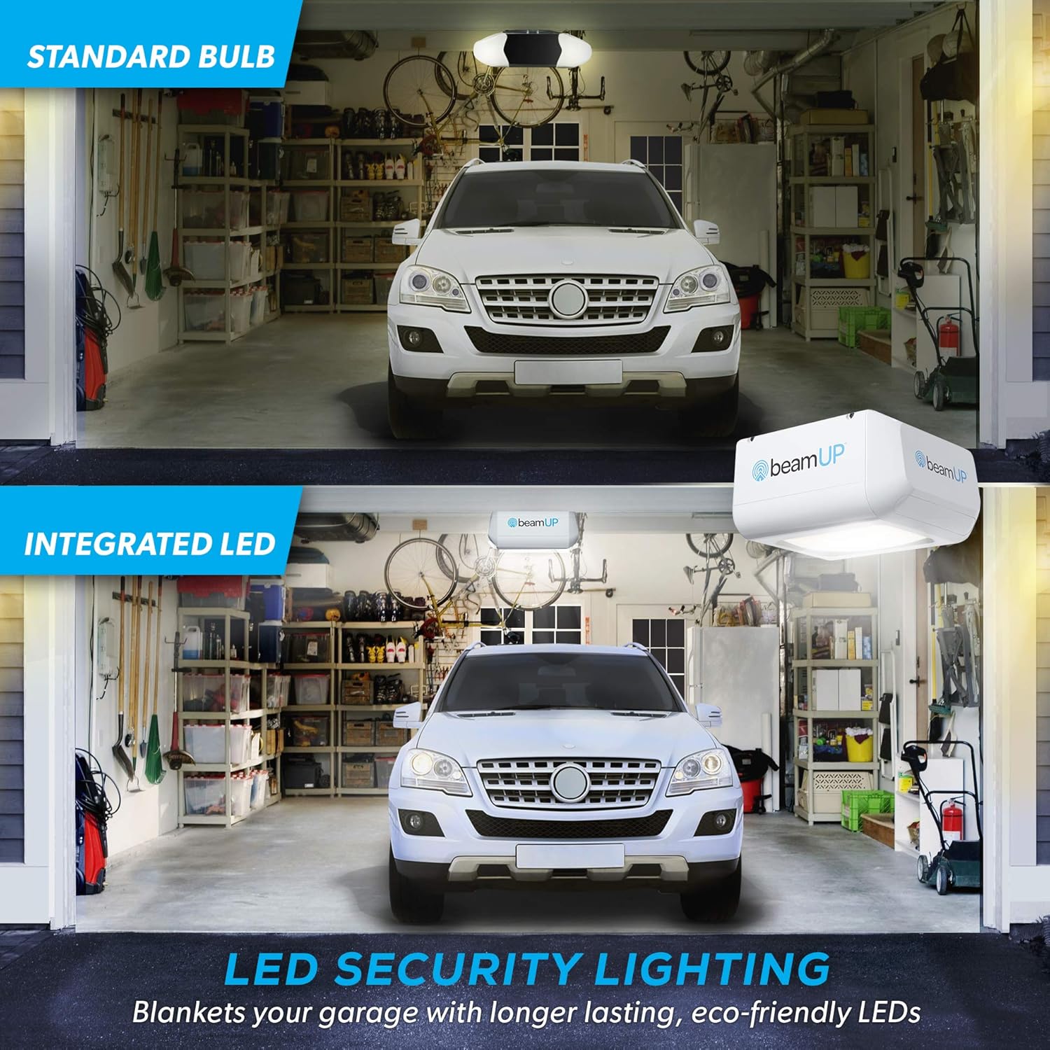 - ADVANCED SAFETY AND SECURITY: This wireless garage door opener has 1500-lumen energy-efficient LED security lighting โ never replace a lightbulb! Additionally, the photo eye safety system provides an additional level of safety to help protect your family