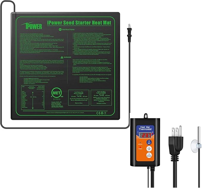 iPower 20" x 20" Waterproof Durable Seedling Heat Mat with Controller Warm Hydroponic Plant for Indoor Gardening Germination Starting