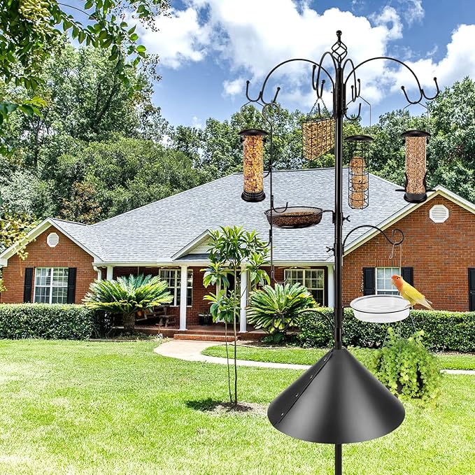 - GREAT GIFT IDEA : Protecting animals and caring for wild birds are selfless actions that we need to do now, for our nature. Standing bird feeders can be placed in our garden or outdoors. Bird feeder station can not only hang bird feeders, but also hang flower baskets, lanterns and other items. Our bird feeder poles can be given as a perfect gift to your loved ones and bring them more happiness.
