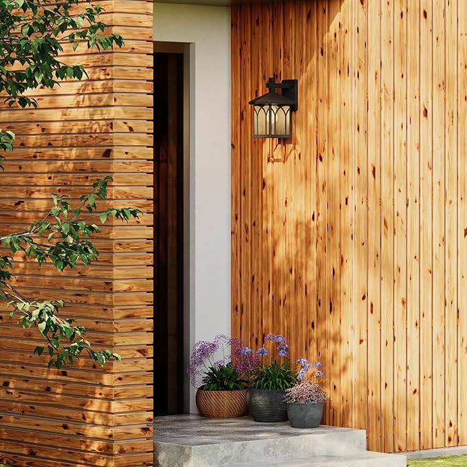 • Flat Black finish frame and backplate. Steel construction. Seeded glass creates a diffused glow for outdoor space.