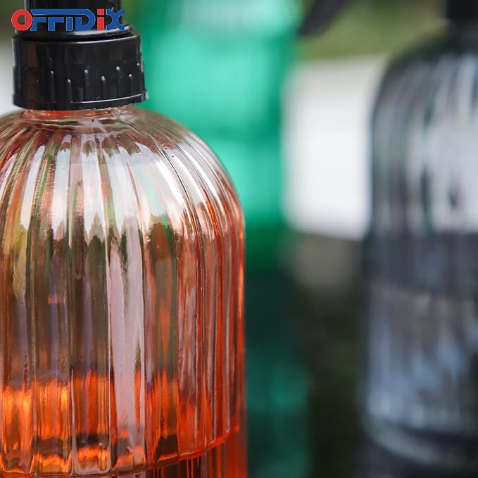 OFFIDIX Glass Watering Can, Handheld Spray Bottles, 0.4L/13.5oz Watering Spray Bottle with Adjustable Nozzle for for Indoor and Outdoor Gardening and Home Cleaning (Orange)