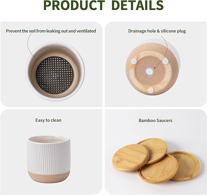 • Ceramic Material: The plant pots are made of high-temperature fired stoneware, which is durable and easy to clean.