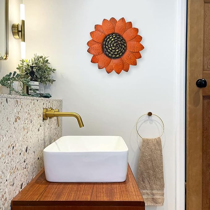 EASICUTI Orange Sunflower Metal Flowers Wall Decor Metal Wall Art Decorations Hanging For Indoor Outdoor Home Bathroom Kitchen Room Bedroom Living Room Garden Patio Porch 13 Inch