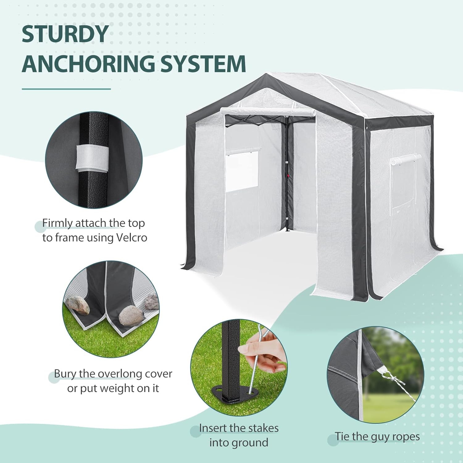 EAGLE PEAK 8x8 Portable Walk in Greenhouse with Polyester Reinforced Corners, Heavy Duty Instant Pop Up Indoor Outdoor Green House, Front Roll Up Zipper Entry Door and Mesh Windows, Gray/White