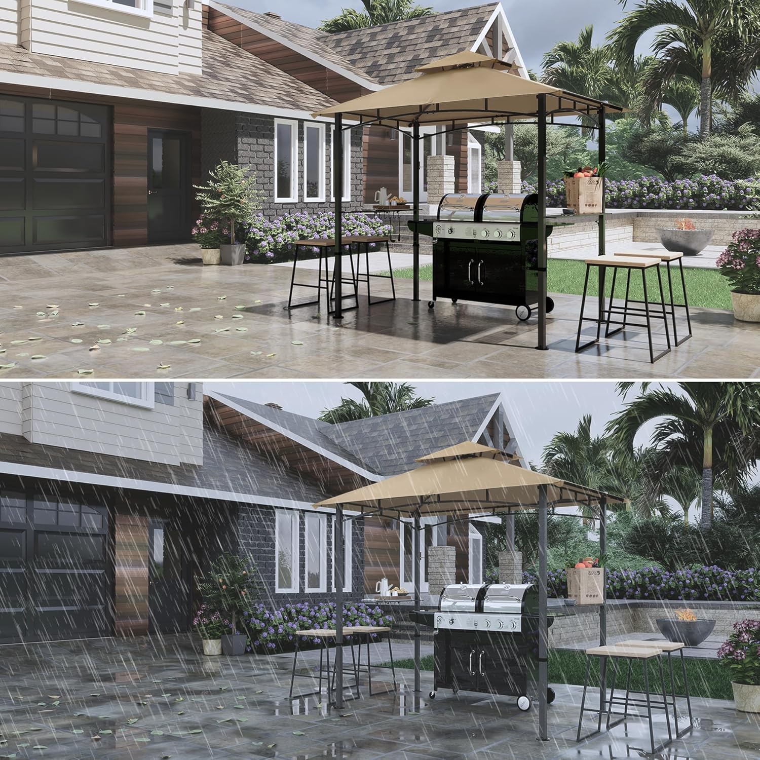 • 【Ideal for Outdoor Grilling】: This grill gazebo creates a perfect spot and patio shade for you to enjoy BBQ party and cooking with 8' x 5' large footprint in the backyard.