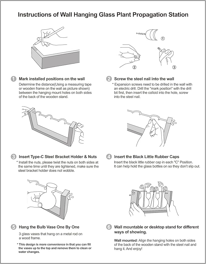 - Wall Plant Propagation Station: Add fresh flowers, artificial flowers,photos cuttings,mixed bouquets, aquatic plants, or live potted plants like Scindapsus, African Violets, and even herbaceous plants. It's an beautiful prop to your office desk,kitchen,window sill,living room table,bedroom,nursery.Propagates your plant's babies in style, bulb glass container with plenty of room for plant's roots and all are visible for observing its roots growth condition.