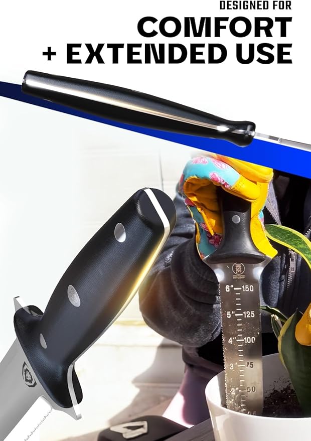 DALSTRONG Hori Hori Garden Knife - 6.5 inch - Straight Edge + Serrated Edge - Gladiator Series Elite - Forged German Steel - Sheath Guard Included - Weeding, Cutting, Digging, Planting - NSF Certified
