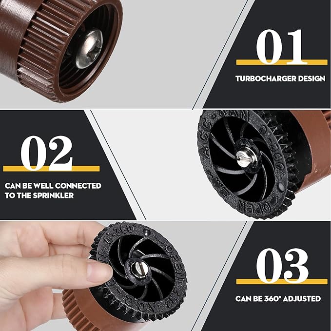 - Good craftsmanship: our adjustable sprinkler nozzle replacements are made of advanced POM plastic materials, which can ensure that the products are very reliable; In addition, it is moisture-proof and drought-resistant, will not be easily deformed and worn and can ensure that it can be applied for a long time; It is very nice sprinkler head for lawn sprinkler system