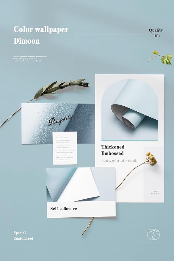 Dimoon 78.7''x17.7'' Blue Peel and Stick Wallpaper Contact Paper Modern Self Adhesive Wall Paper Removable Renter Friendly Textured Solid Color Shelf Cabinet Vinyl Roll (78.7''x17.7'',Light Blue)
