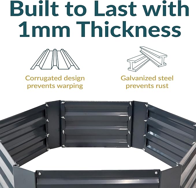 - BUILT TO LAST: Made from 1mm thick galvanized steel, these metal raised garden beds are designed for long-term durability and resistance to rust and weather damage. Galvanized steel is sturdy and capable of holding large amounts of soil and plants without bending or buckling.
