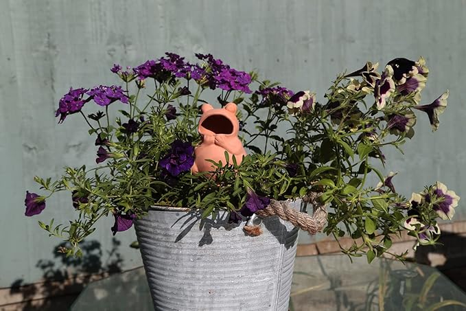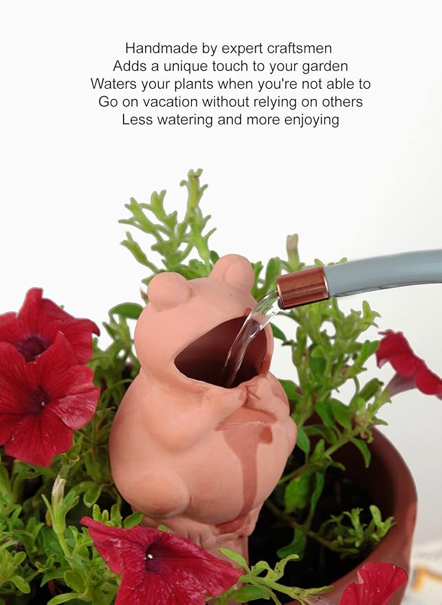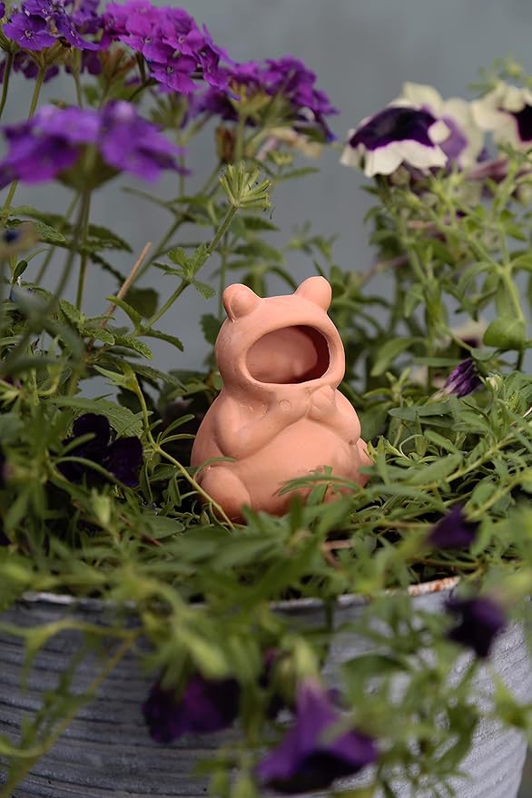 Terracotta Plant Self Watering Spikes - Set of 3 Terracotta Self Watering Bulbs, Self Watering Stakes, Self Watering Globes for Pot Plants (Frogs Plain, Large)