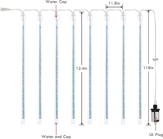 - Extendable & Easy to Use: End to end connectors allow you to connect multiple sets together up to 5 strings.The Christmas meteor shower lights are not heavy, easier to hang.