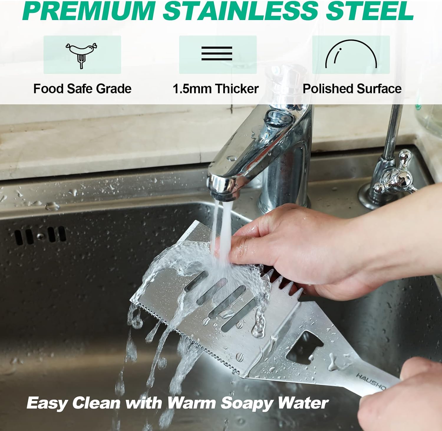 HAUSHOF Large Grill Accessories Heavy Duty BBQ Set Gifts for Men/Women - Premium Stainless Steel Spatula, Fork & Tongs, Barbecue Utensils Tool Kit Gift for Grilling Lover Outdoor