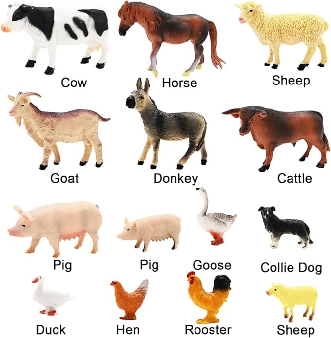 - π― LEARNING EDUCATIONAL TOY: They're also the great pretend play props, enhancing animals vocabulary, language skills, creative thinking and active cognitive learning through imaginative play. Realistic detailed farm animals are easy for toddler to distinguish, it's the good learning toys. Also this farm toys can also make away your kids from electronics which can protect their eyesight.