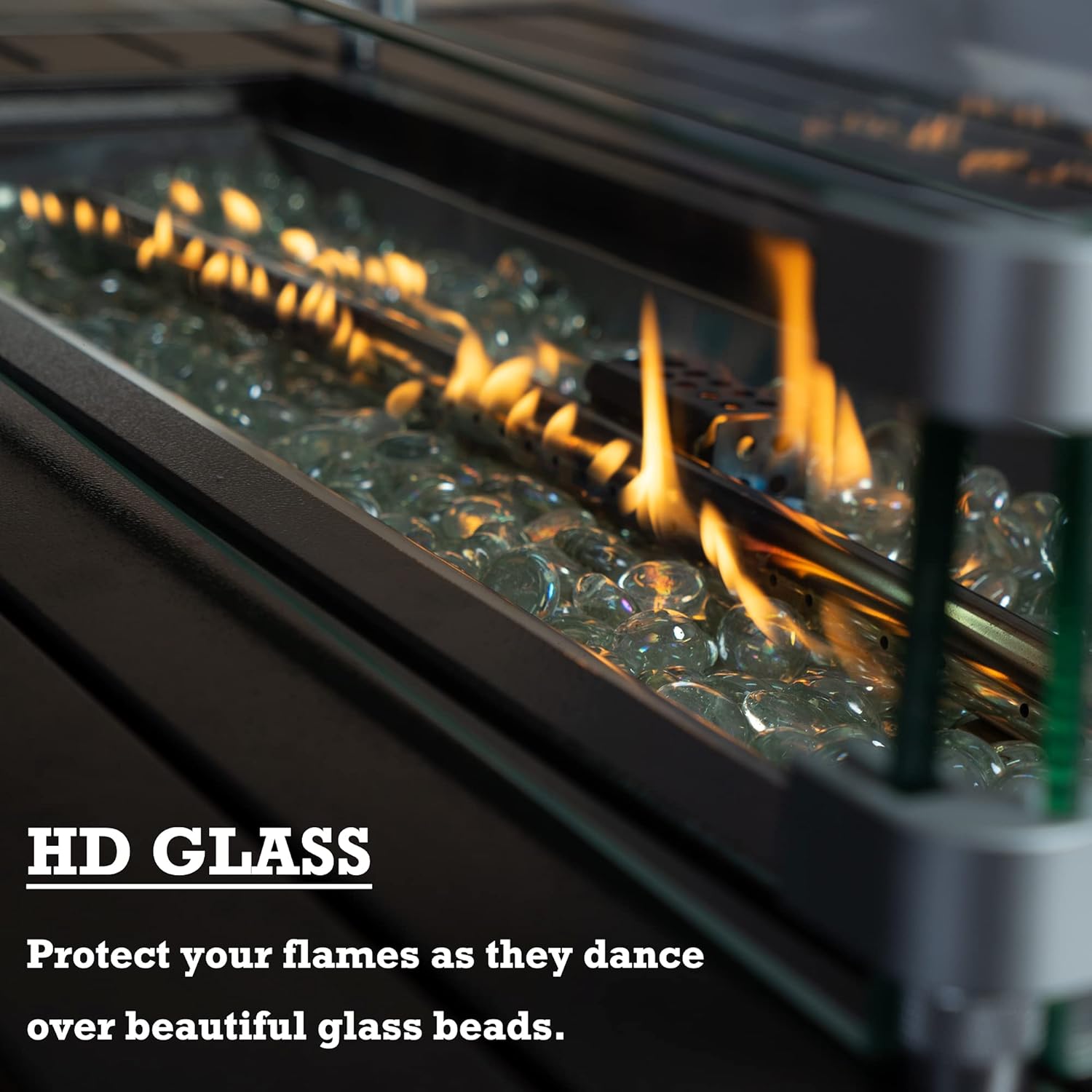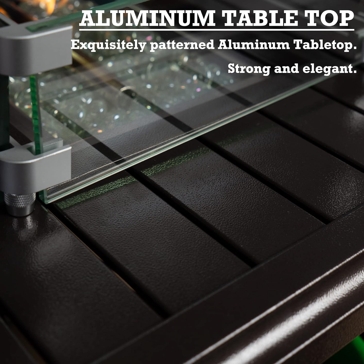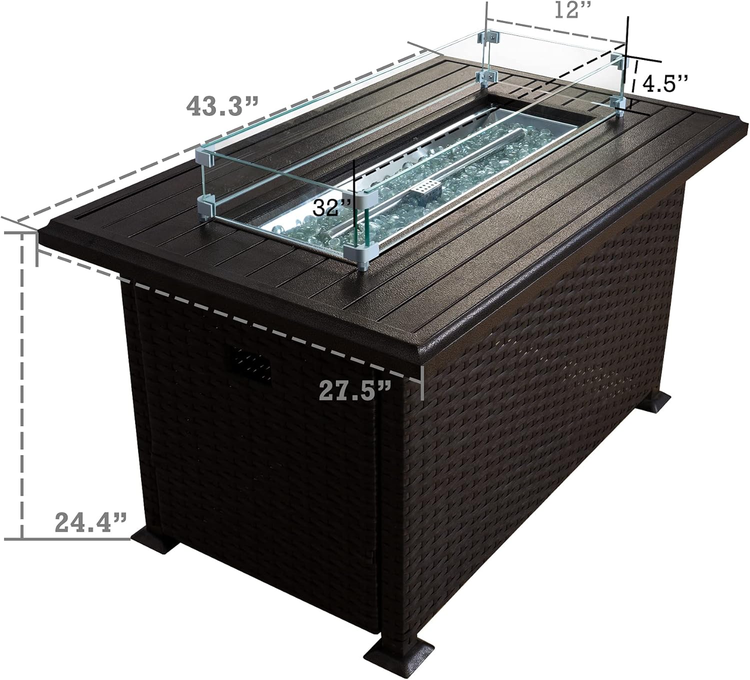 • ✅Aluminum Tabletop & Glass Wind Guard - The fire pit table features an aluminum tabletop and a glass wind guard for added safety and convenience.
