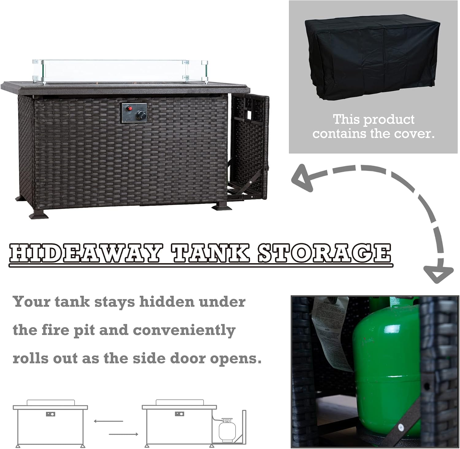 • ✅ Slide Out Tank Holder - The patio fire pit table has a slide-out tank holder, making it easy to change the propane tank when needed.