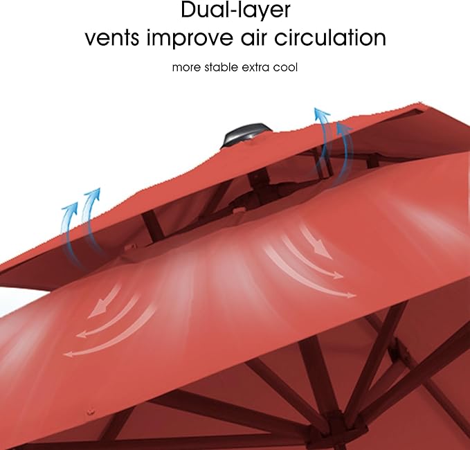 - Balanced wind design: Featuring a double-top design, the umbrella allows for ventilation underneath and can control wind direction to stabilize the canopy