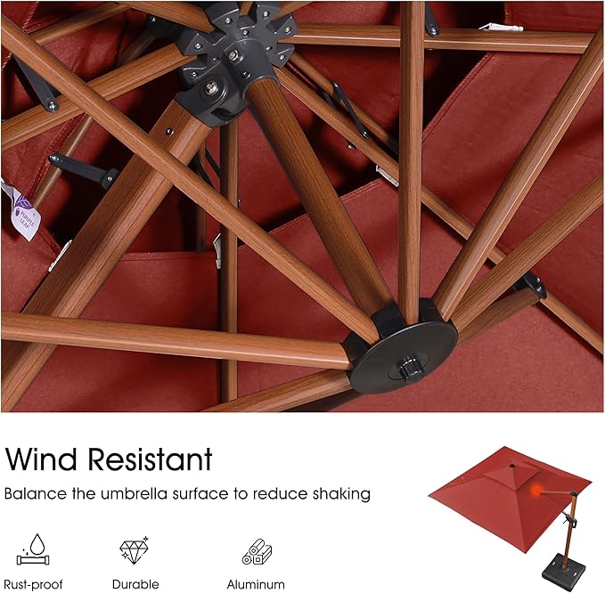 PURPLE LEAF 10ft Patio Umbrella with Base Outdoor Square Umbrellas Large Cantilever Umbrella Windproof Offset Umbrellas Heavy Duty Sun Umbrella for Garden Deck Pool Patio, Brick Red