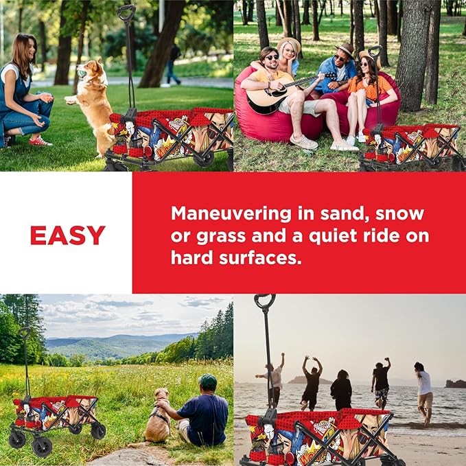• ✔️TRAVEL READY: Folds up compact and unfolds in seconds flat with no tools required. When you’re all done fold the wagon up and put it in your trunk for your next destination or store it away in your closet or garage until next time.