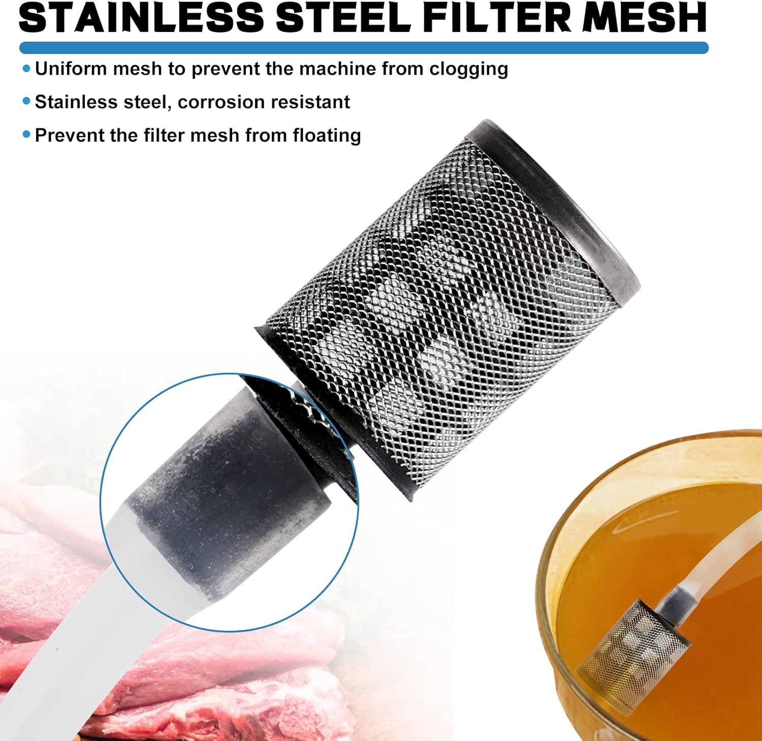 - [Deep Flavor Penetration]: Equipped with 304 stainless steel four-way injection needle that effortlessly penetrates thick cuts of meat (Note: Use thawed meat, not frozen), ensuring marinade distribution from the core to the surface for juicy, restaurant-quality results (Tip: Filter marinade to prevent particle clogging)